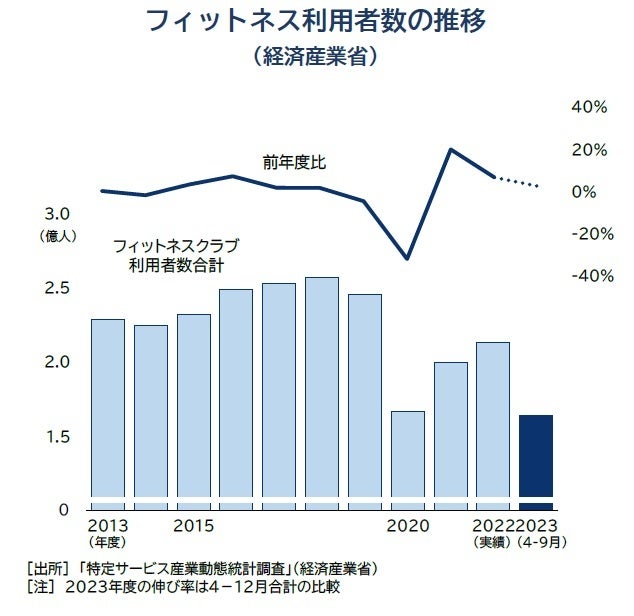「フィットネス市場」、23年度は6500億円に到達見込み 前年度から10%超の増加