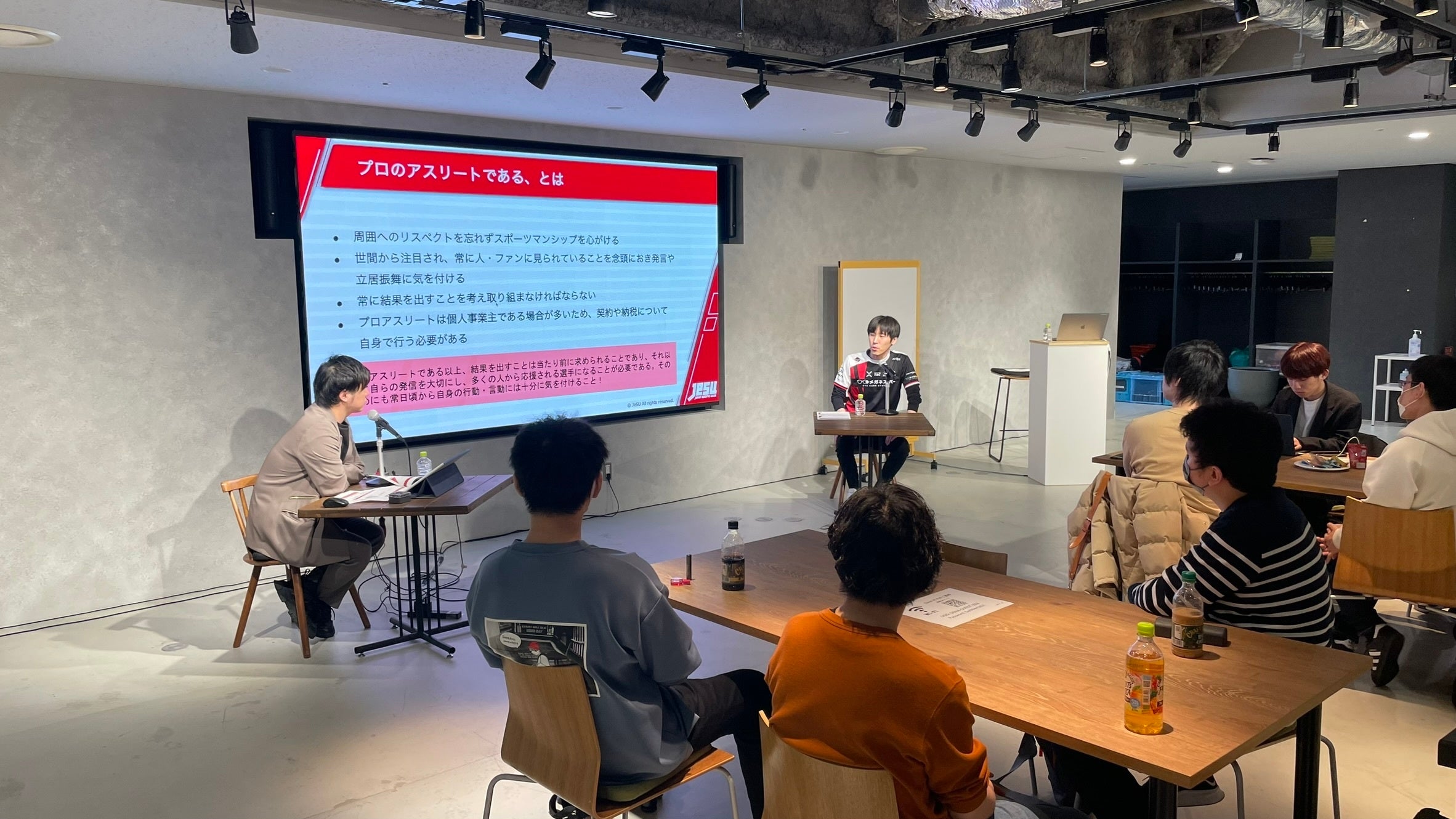 オフラインで開催された研修会には、プロ選手やプロチーム関係者などおよそ20名が参加。3時間以上にわたって5つのセッションが実施され、グループワークやQ&Aでは、オフラインならではの熱のこもった意見交換が行われました。