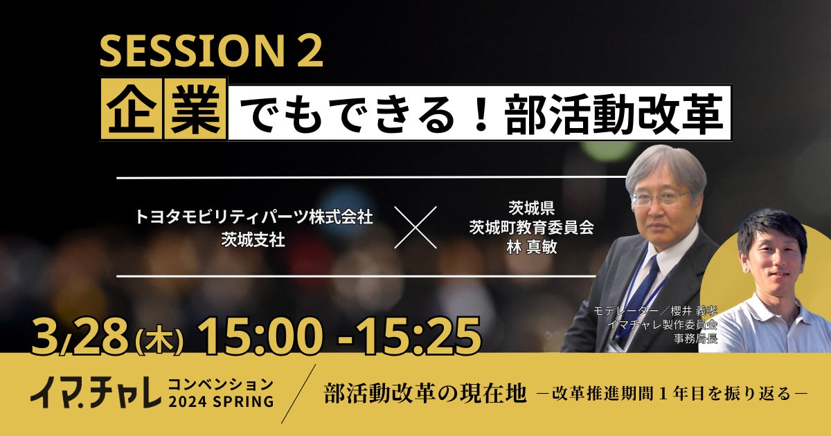 セッション間では、イマチャレ共創パートナー(ソフトバンク株式会社、株式会社シーエスエス、株式会社電算システム、株式会社JTB)の部活動改革に向けた取り組み事例も動画にてご紹介いたします。