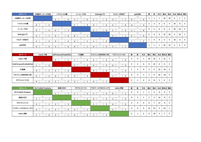 予選リーグ初戦では、Ambrogio FC(千葉県)が初参加ながらも8点を取り、注目チームの一つになった。また、F.S.オーガは、ヴィオレータ相手に3-2と接戦を勝利。