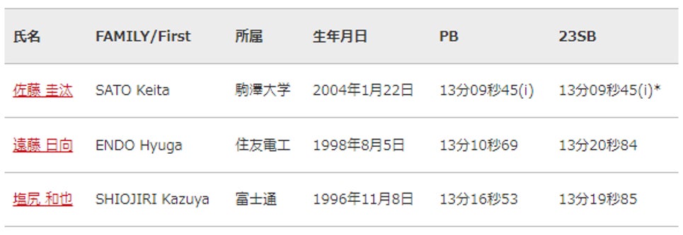 男子5000mにはダイヤモンドアスリートで今年1月に5000m日本歴代2位の記録(日本室内記録)を出した佐藤圭汰(駒澤大学)、日本歴代3位の記録を持つ遠藤日向(住友電工)、男子10000m日本記録保持者の塩尻和也(富士通)の3名が出場予定です。