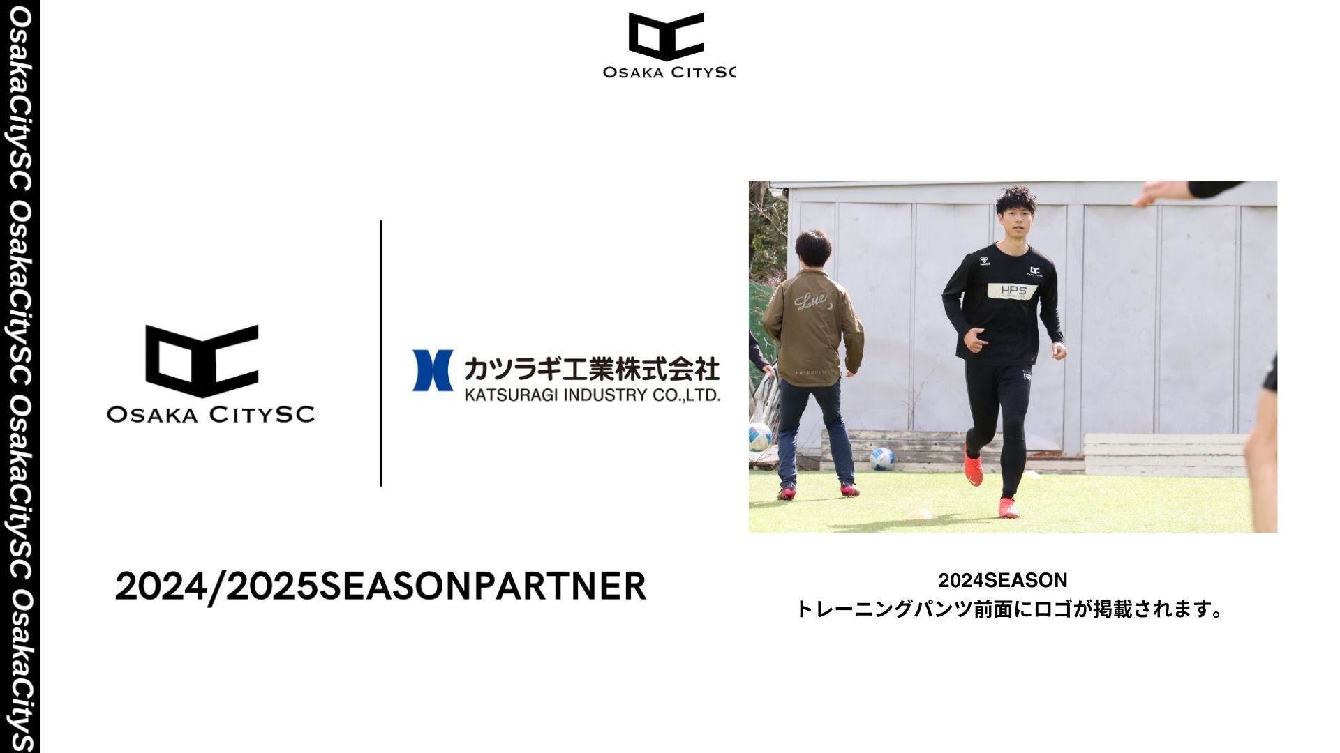 OsakaCitySCを運営する株式会社OsakaCitySC(⼤阪市中央区)は、カツラギ工業株式会社様と2024パートナー契約を締結したことを発表致します。