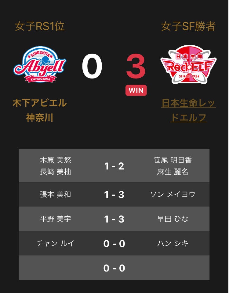 ホームプレスリリース ノジマTリーグ 2023-2024シーズン 女子ファイナル 3月24日開催 木下アビエル神奈川 vs 日本生命レッドエルフ 試合結果 2024年03月24日 19時00分 公開|スポーツマニア編集部プレスリリース 一般社団法人Tリーグのプレスリリース 3月24日開催 ノジマTリーグ 2023-2024シーズン 女子ファイナル 木下アビエル神奈川 vs 日本生命レッドエルフの試合結果をお知らせします。