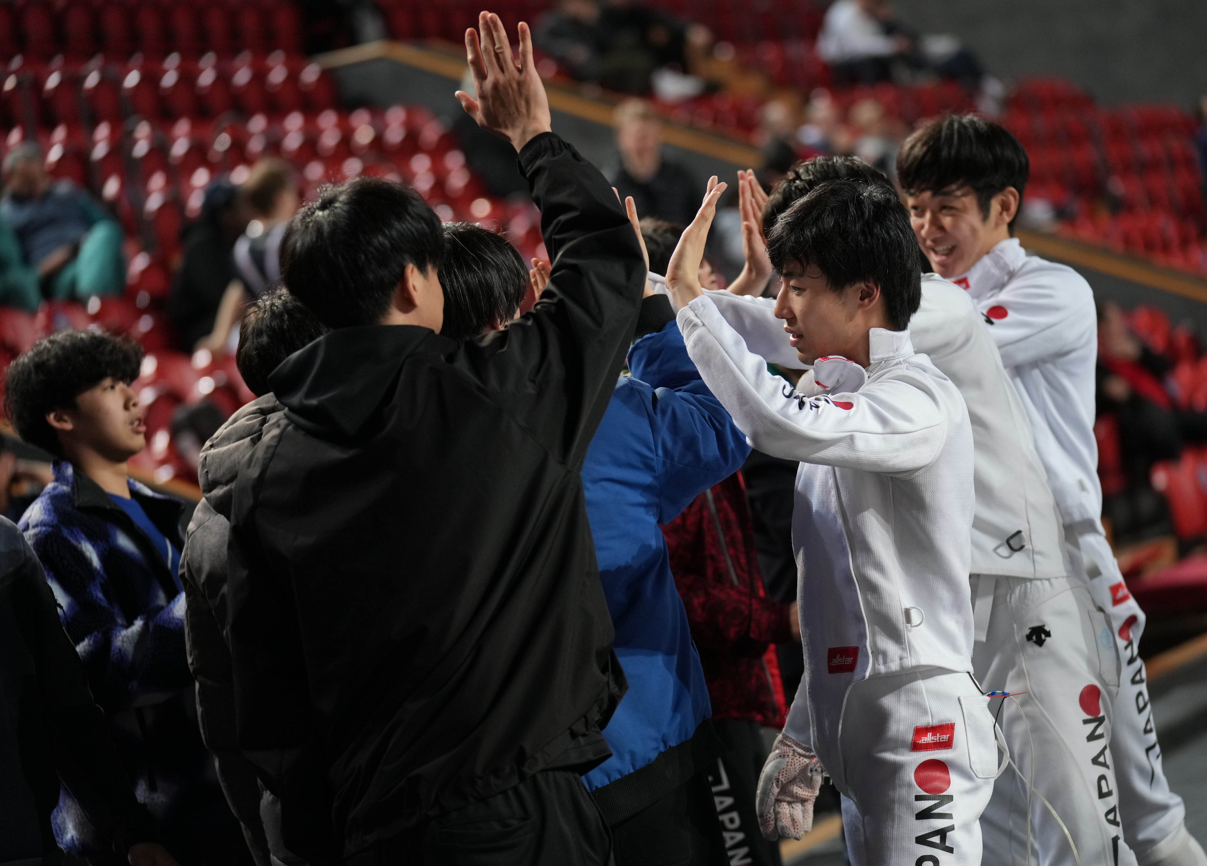 今大会を世界ランク4位で迎えた男子エペ日本チームは、加納虹輝(日本航空株式会社)、山田優(山一商事株式会社)、古俣聖(株式会社本間組)、松本龍(日本大学)のメンバーで大会に臨みました。