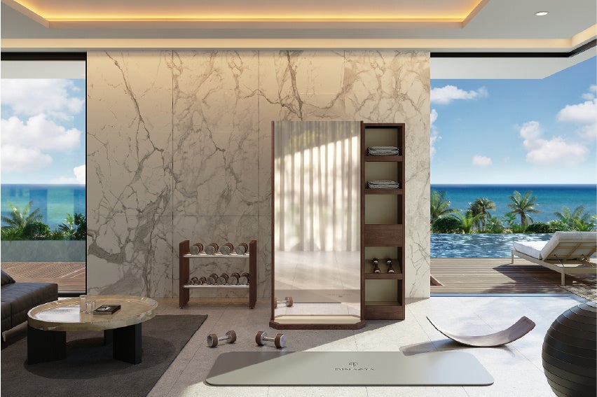 「FITNESS DISPLAY」は、音楽再生やライブストリーミング、動画を視聴できるスマートTVや自分のフォームを確認できる大型のミラーを搭載し、より効果的なエクササイズをサポート。