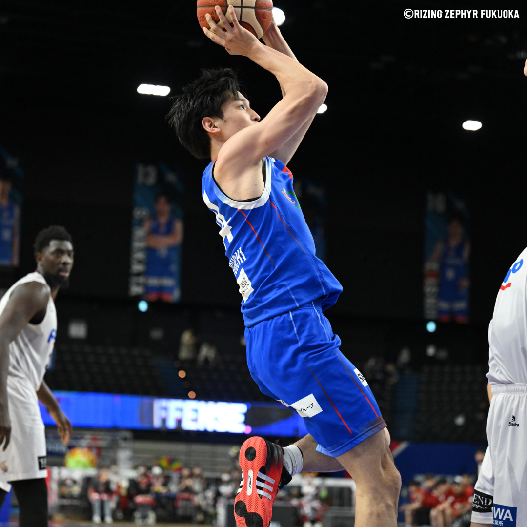 奈良に先制を許した福岡だったが、#34パブロのインサイドで追いつくと、奈良にミスを誘い、#0兒玉の3Pシュートと#24谷口のインサイドで、再び得点が一歩前に出る。福岡のタイトなディフェンスに対しルーズボールなどでボールへの執念を奈良にみせられてしまう。福岡は外角のシュートがリングに嫌われる中、#33加藤が3Pシュートを沈めるも、奈良に3点のリードを許し前半を終える。