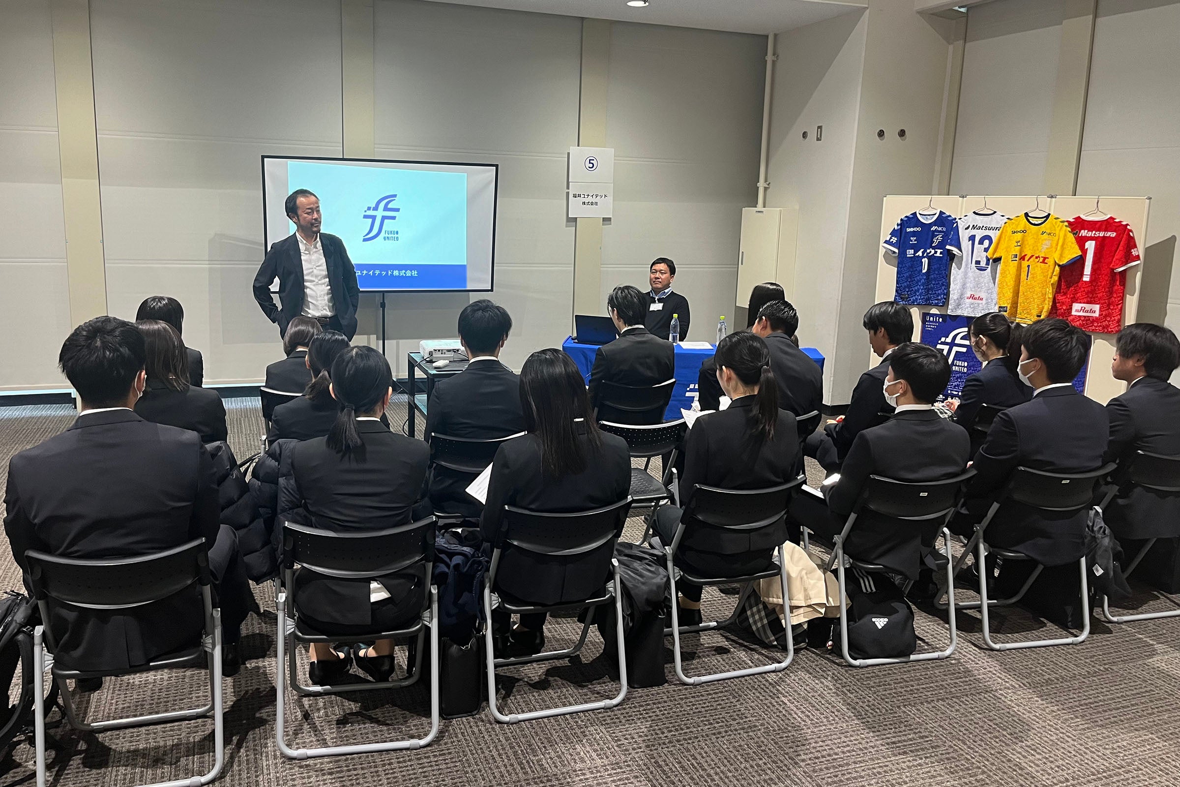 Jリーグを目指し、北信越フットボールリーグ1部でプレーする福井ユナイテッド株式会社は、「クラブの規模でやる内容やつくスキルも違う。また、毎年新卒を募集しているわけでもないので、例えばキャリアデザインをして、他所で学んだスキルを武器にスポーツクラブに転職するのもひとつ」と提案しました。