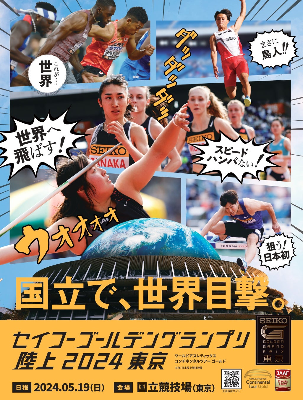 2024年5月19日(日)に国立競技場(東京)で開催する「セイコーゴールデングランプリ陸上2024東京」。大会50日前の本日、第2弾キービジュアルを公開いたしましたのでお知らせします。