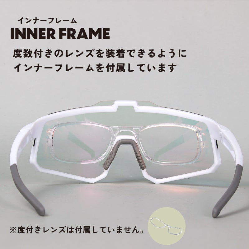 度数付きのレンズを装着できるインナーフレームを付属しています。