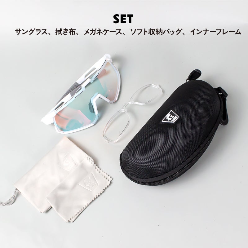 調光サングラス、拭き布、メガネケース、ソフト収納バッグ、インナーフレーム |