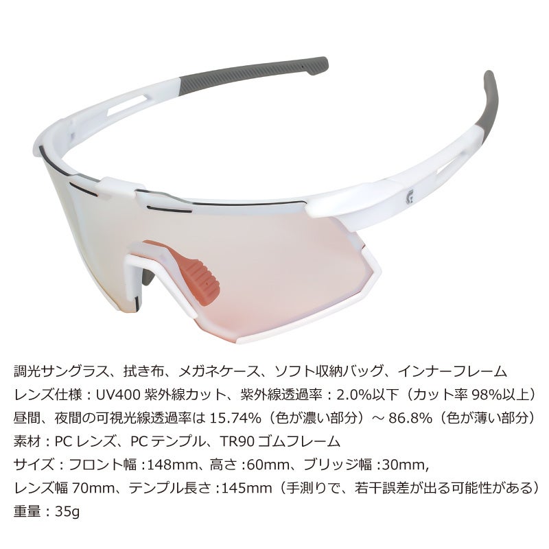 調光サングラス、拭き布、メガネケース、ソフト収納バッグ、インナーフレーム |