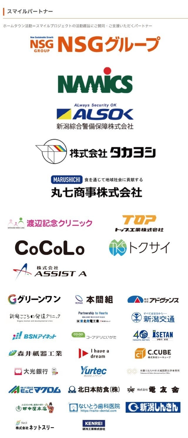 アルビレックス新潟では、たくさんの笑顔に貢献するアクションとして、ホームタウン活動を「スマイルプロジェクト」と定義し、笑顔溢れる街づくりに取り組んでまいります。