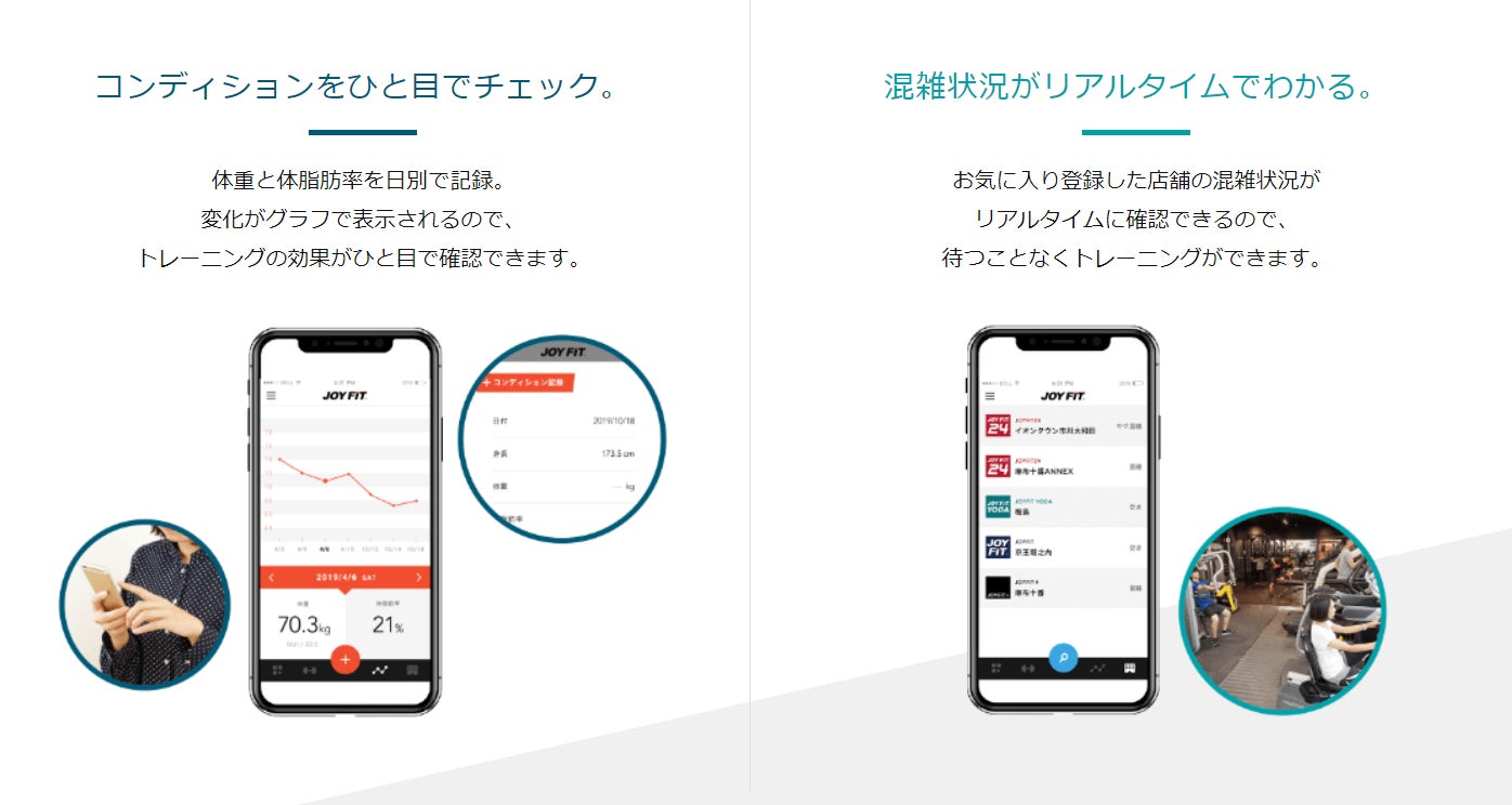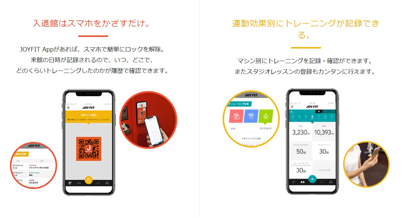 その他、店舗からのお得な情報のお知らせ機能や契約状況の確認、各種お手続きの機能もあります。(https://joyfit.jp/pr_app/)
