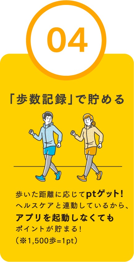 「来館」や「歩数記録」など全6つのシチュエーションでポイントが貯められます。