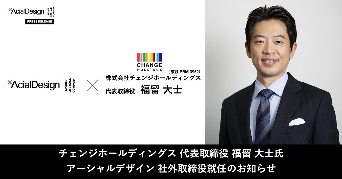 株式会社アーシャルデザイン(本社:東京都渋谷区、代表取締役CEO:小園翔太)は、今後のさらなる事業成長と経営体制強化のため、新たに社外取締役として、株式会社チェンジホールディングス(東証PRM3962)代表取締役 福留大士氏が就任した事をお知らせします。