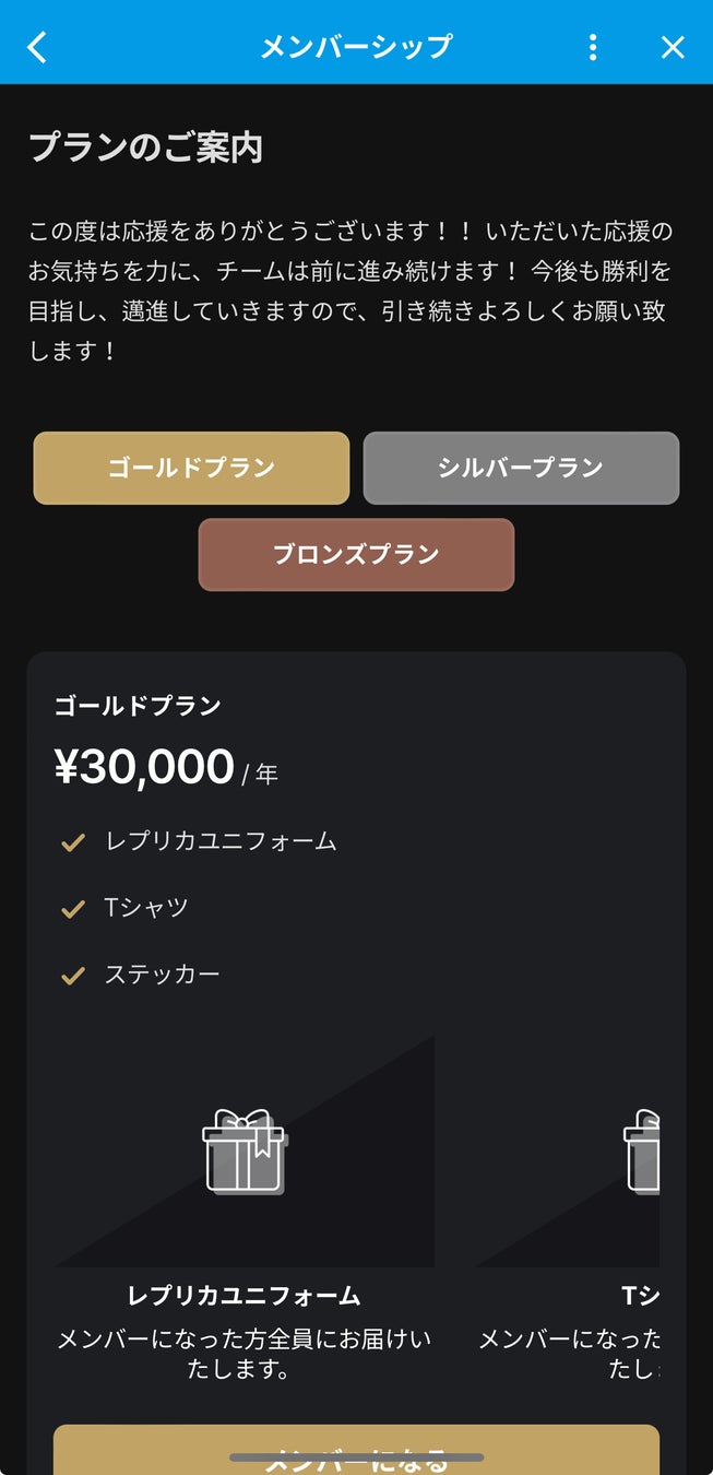 メンバーシップ機能からファンクラブ会員になって頂くと、チームから特別なグッズをお届けします!
