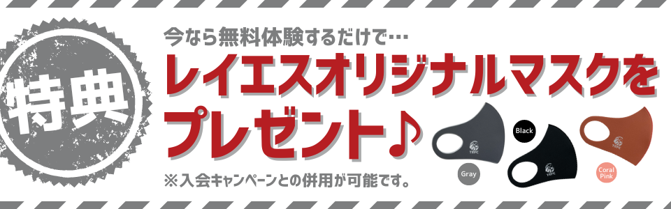 体験をすると、レイエスオリジナルマスクをプレゼントいたします。