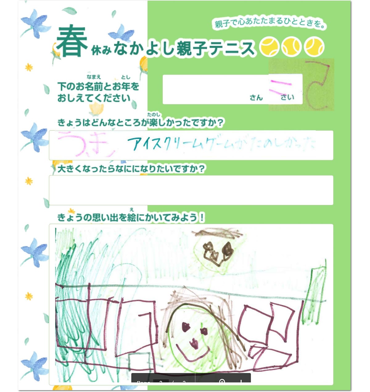 「おとうさんにテニスでかててうれしかった」