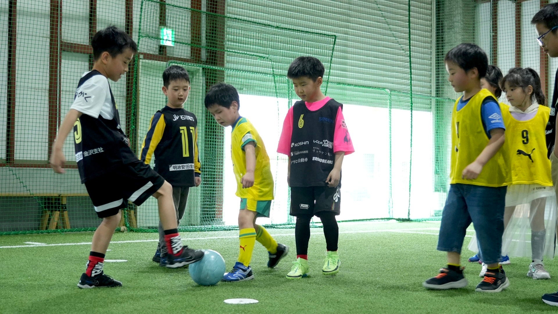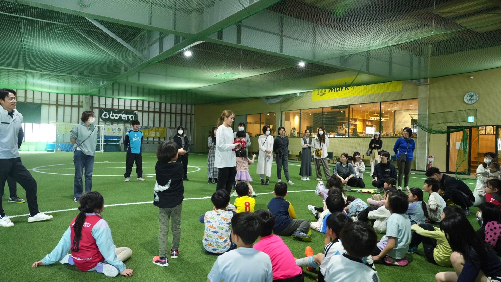 今回これまで行なってきた「スポーツ×子ども食堂」イベントを「モグモグサッカーフェスタ」と新たに名付けて開催。会場は室内フットサルコート2面とキッチン・カフェスペースを兼ね備え、地域の様々な方が繋がる居場所となっているmark sports communityを前回に引き続き利用させていただきました。当日は、年齢や性別、障がいの有無などに関係なく51名の方々にご参加いただき、前半は一緒に運動を楽しむ活動を行いました。サッカーの試合では、「歩くサッカー」と「走るサッカー」の2コートを用意し、子どもたちや一緒に参加をしている保護者の方が自分のプレーしたい方法をその時の気持ちに合わせて選べるようにしたり、その場で一緒にルールを決めたりしながら取り組むことで、誰にとってもインクルーシブな環境づくりを目指しました。最初は緊張した様子だったお子さんや保護者の方も、一緒に身体を動かすことで次第に笑顔いっぱいで楽しむ姿がみられました。
