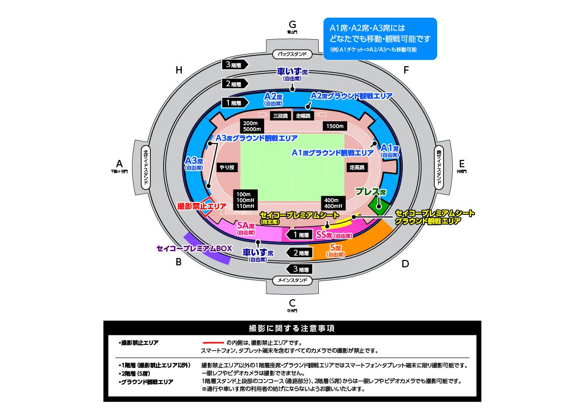 ※どの席種をご購入いただいてもA席(A1・A2・A3)にも移動可能となります。