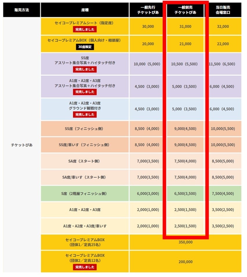 ※ セイコープレミアムBOXをご購入のお客様には、代表者様へ人数分のチケットをお送りいたします。
