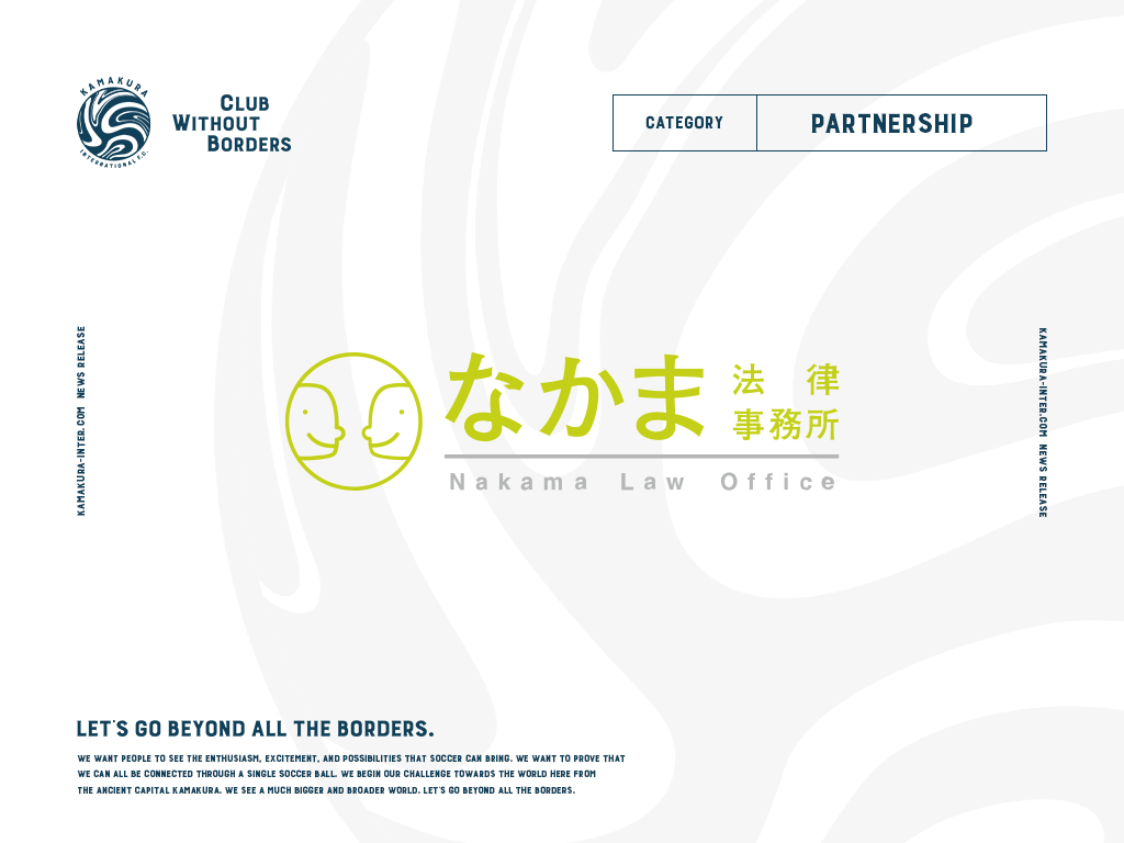 鎌倉インターナショナルFC(通称:鎌倉インテル)は、世界のスポーツのなかで最も競技人口と観戦者数が多いサッカーを通じ、日本を国際化することを目指して2018年1月に設立しました。今季、神奈川県社会人サッカーリーグ1部で戦い、力をつけ、近い将来のJリーグ参入を見据えています。ビジョンは“CLUB WITHOUT BORDERS”。性別、年齢など、あらゆるものに “BORDER(境界線)”をもたないサッカークラブを作り上げます。同時に海外で活躍する選手や人材を育成し、鎌倉発のグローバル人材を輩出していきます。