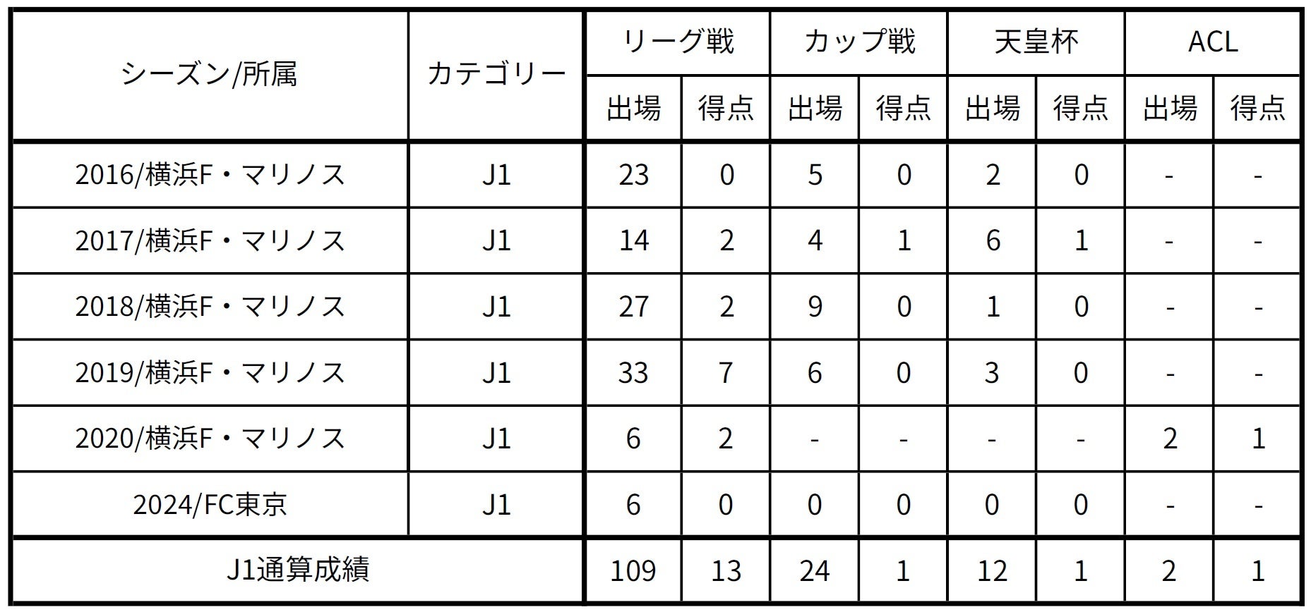 □出場記録(2024年4月11日時点/国内クラブ所属時のみ)