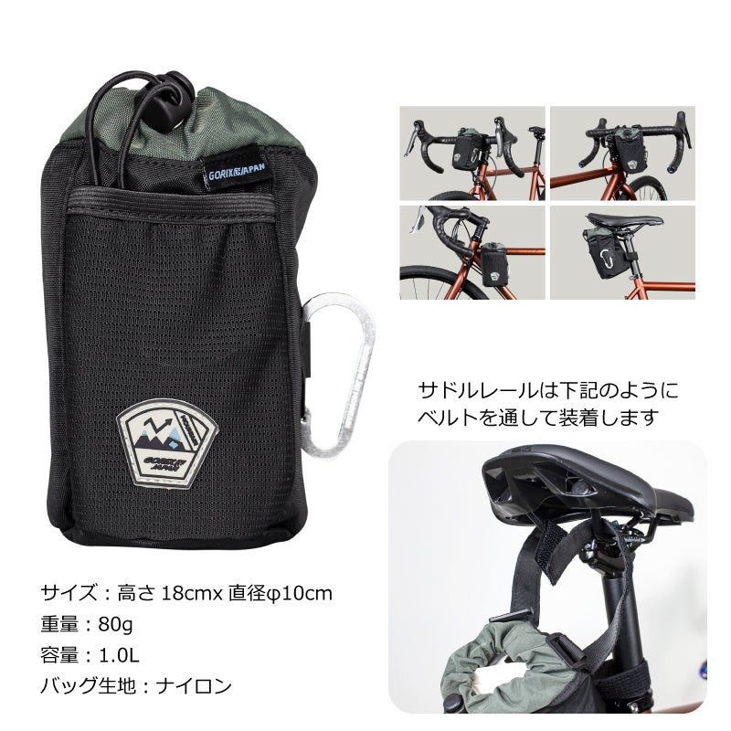 また取外し可能のカラビナが標準で付いているので、自転車だけでなくリュックなどのバッグにも装着可能でドリンクバッグとして活用できます。