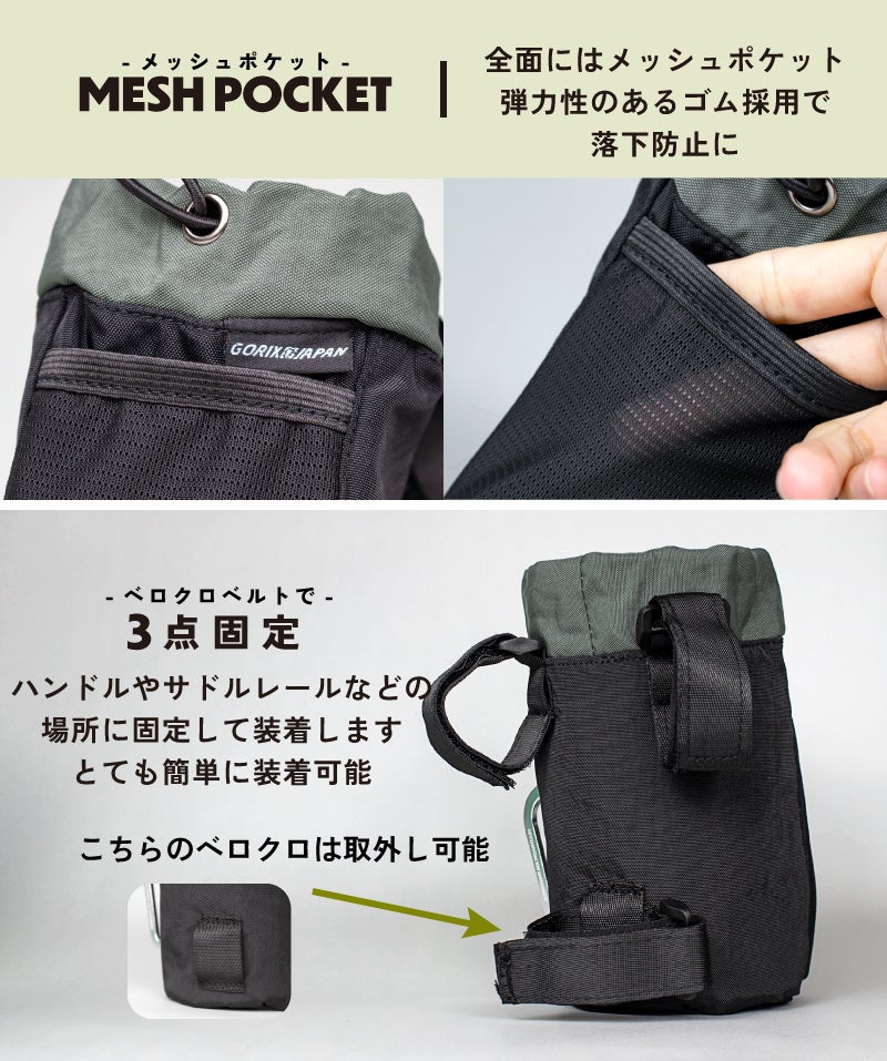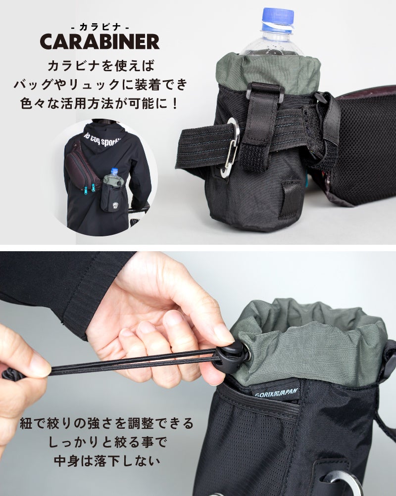 また取外し可能のカラビナが標準で付いているので、自転車だけでなくリュックなどのバッグにも装着可能でドリンクバッグとして活用できます。