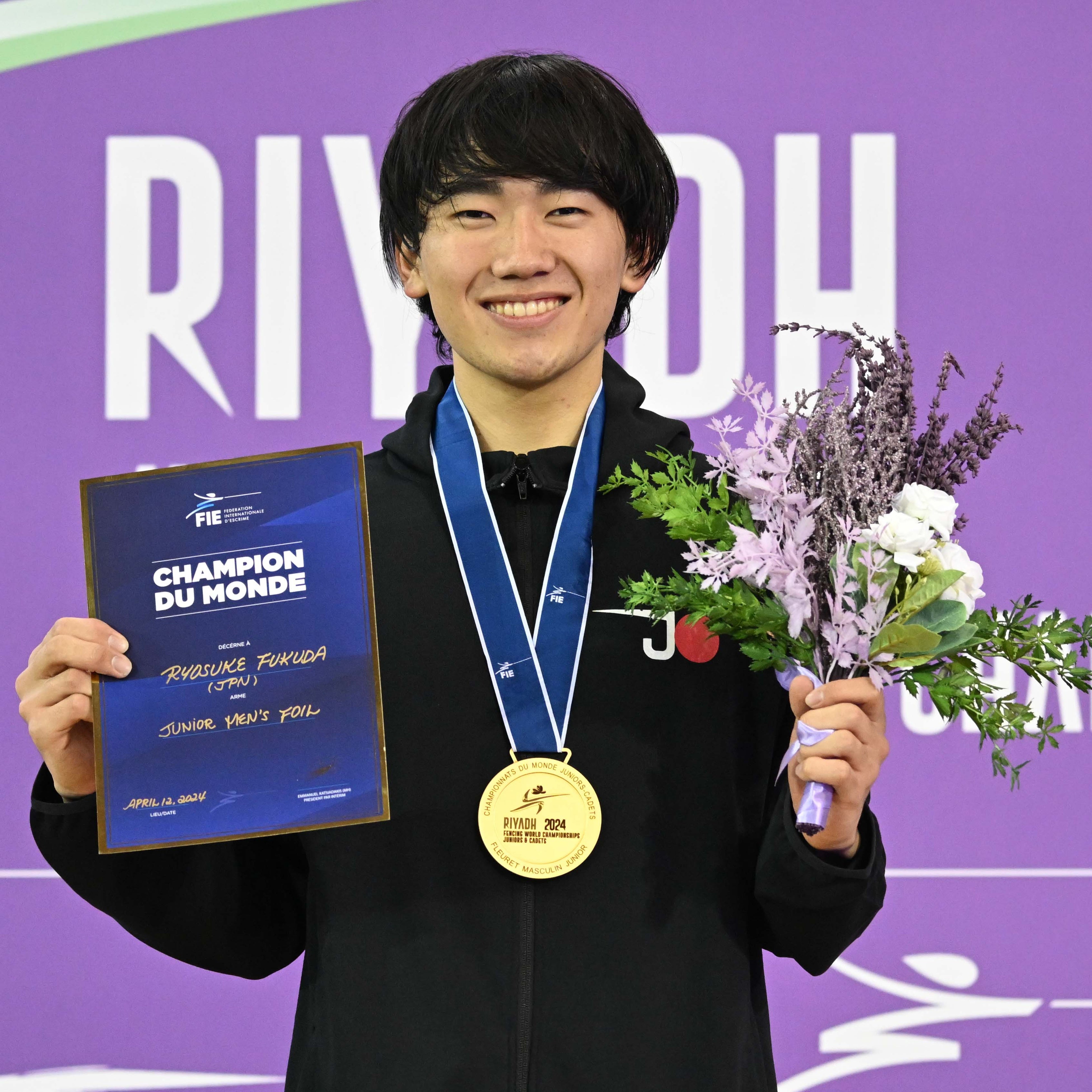 現地時間2024年4月12日(金)にサウジアラビア(リヤド)で開催された、ジュニア世界選手権にて、福田亮介(法政大学)が金メダルを獲得しました。昨年は団体(同大会)で銅メダルを獲得しましたが、個人戦でのジュニア世界選手権メダル獲得は自身初の快挙となります!