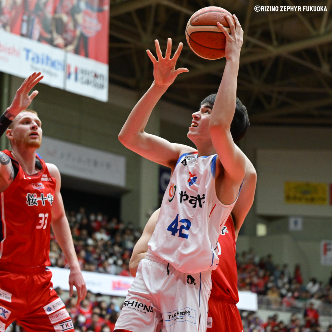 なかなか決めることができなかったので、まずは初めて決められて嬉しいです。ポイントで使われることがまたあると思うので、短い時間でもしっかりチームに貢献できるような1本を決めていきたいです。リバウンドではまだまだフィジカルもタイミングも負けていたので、逃げずにしっかり戦います。