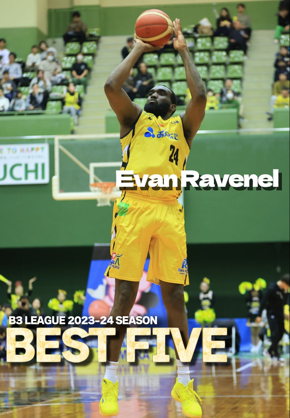 この度、「B3リーグ レギュラーシーズン 2023-24」全日程を終え、『2023-24シーズン 個人表彰およびリーダーズ』が確定し、香川ファイブアローズからはイバン・ラべネル選手が年間ベスト5に選出されましたので、お知らせいたします。