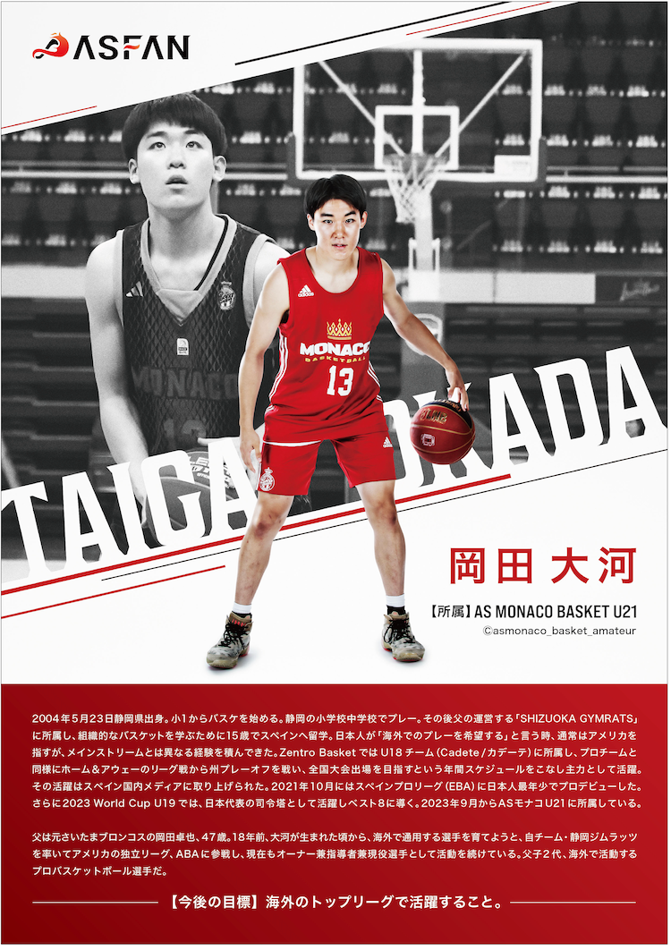 AS MONACO U21所属、バスケットボール2023年U19ワールドカップ日本代表でもある、岡田大河選手とファンコミュニティ運営契約を締結したことをお知らせいたします。