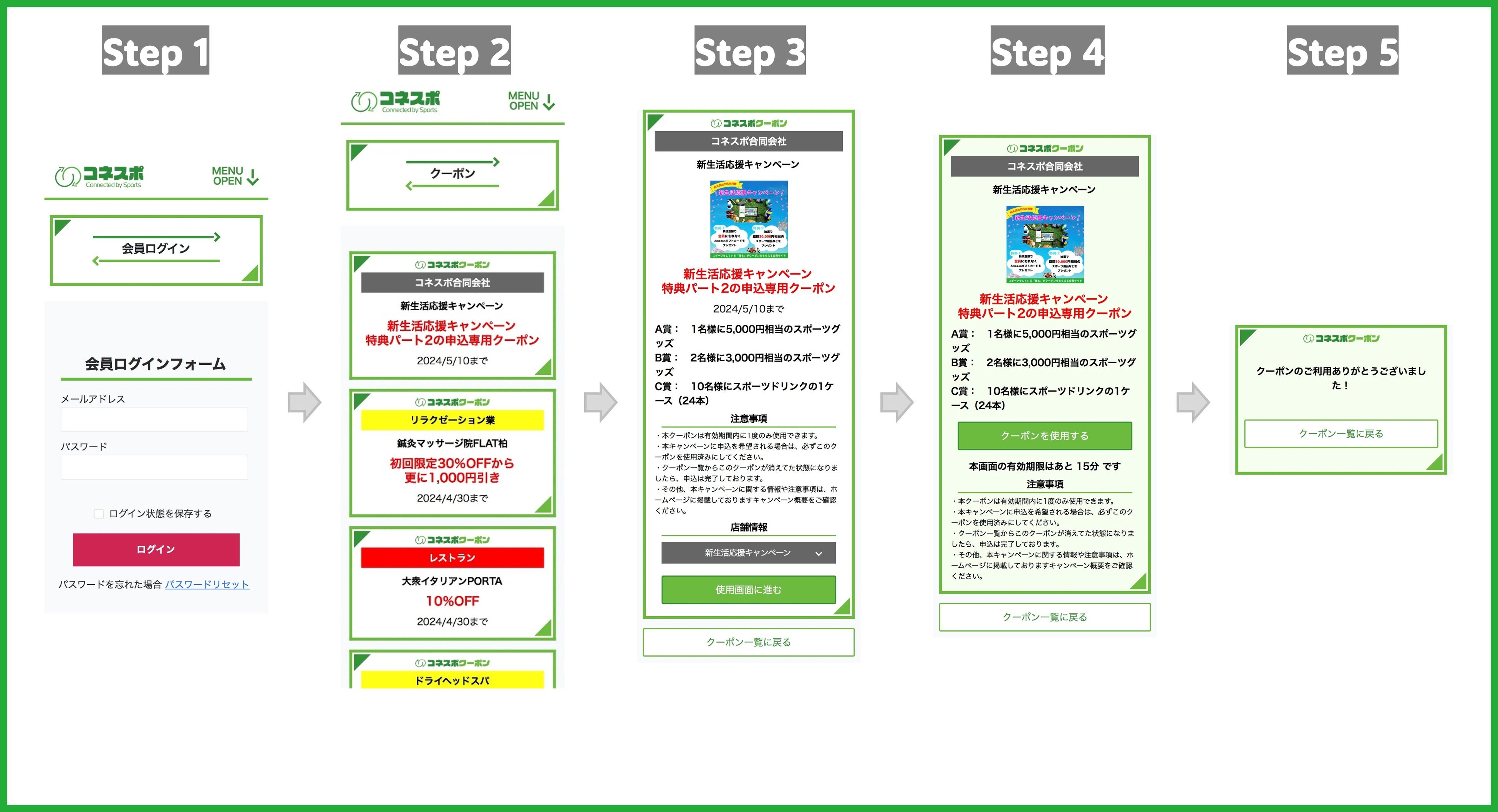 Step2⃣: 会員ページのクーポン一覧にアクセス