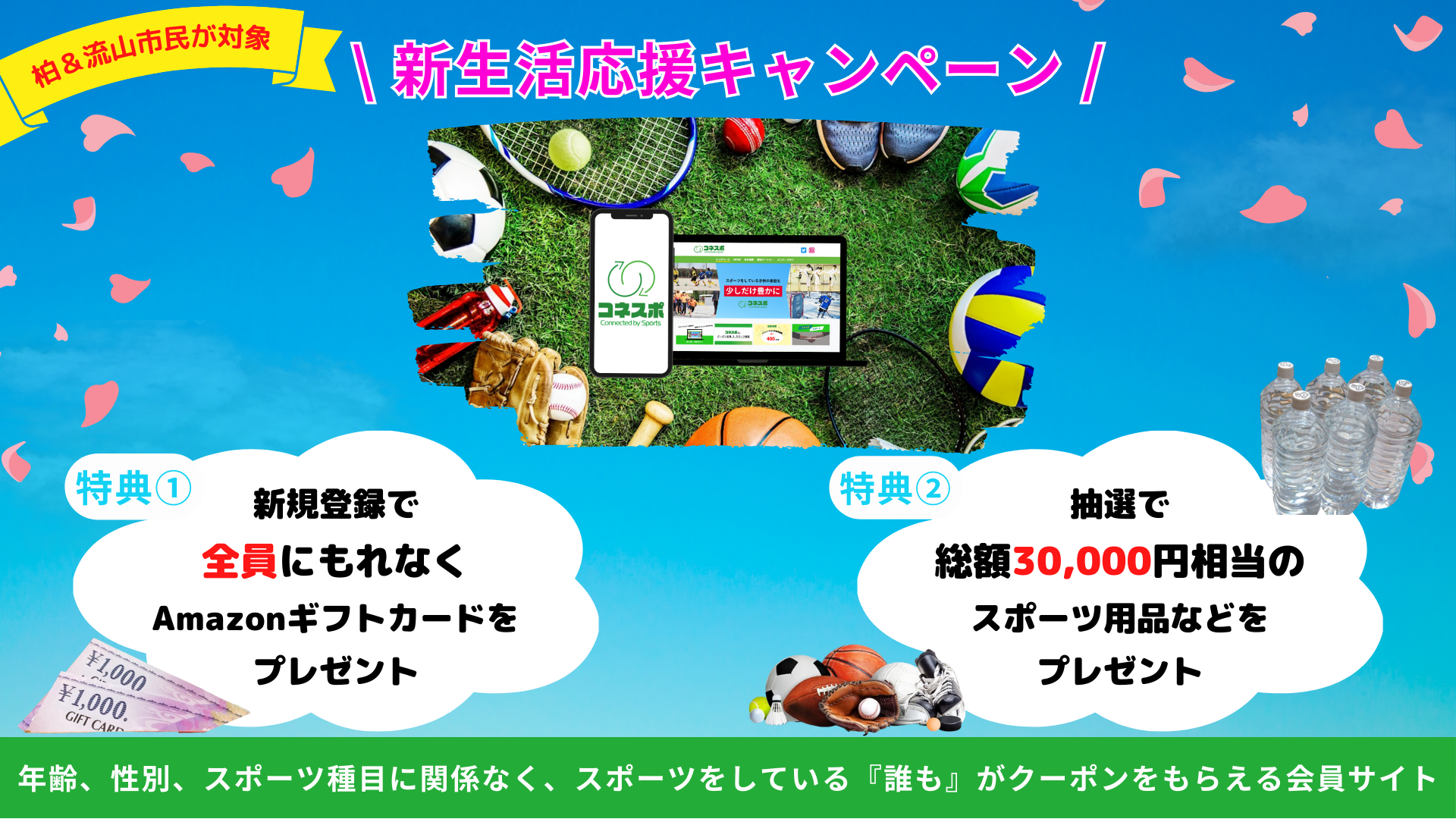 キャンペーン期間中、コネスポ会員に新規で登録された全員に、Amazonギフトカード(最大1,000円分)をプレゼント