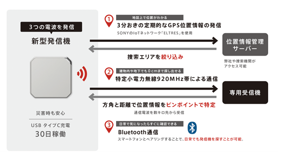 山、海での遭難、高齢者や子どもの行方不明、災害時もピンポイントで発見可能に