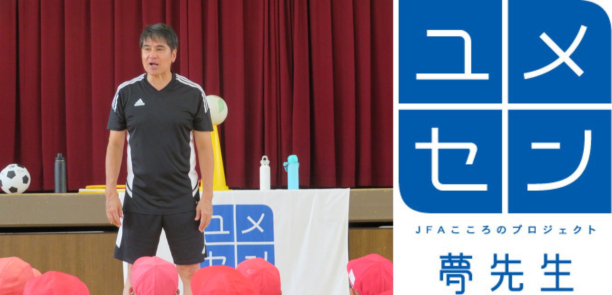 JFAこころのプロジェクト「夢の教室」は、子どもたちの心身の健全な成長に寄与することを目的に取り組んでいる活動です。様々な競技の現役選手やOB、OGを「夢先生」として学校に派遣し、子どもたちに「夢を持つことや、その夢に向かって努力することの大切さ」「仲間と協力することの大切さ」を伝えています。