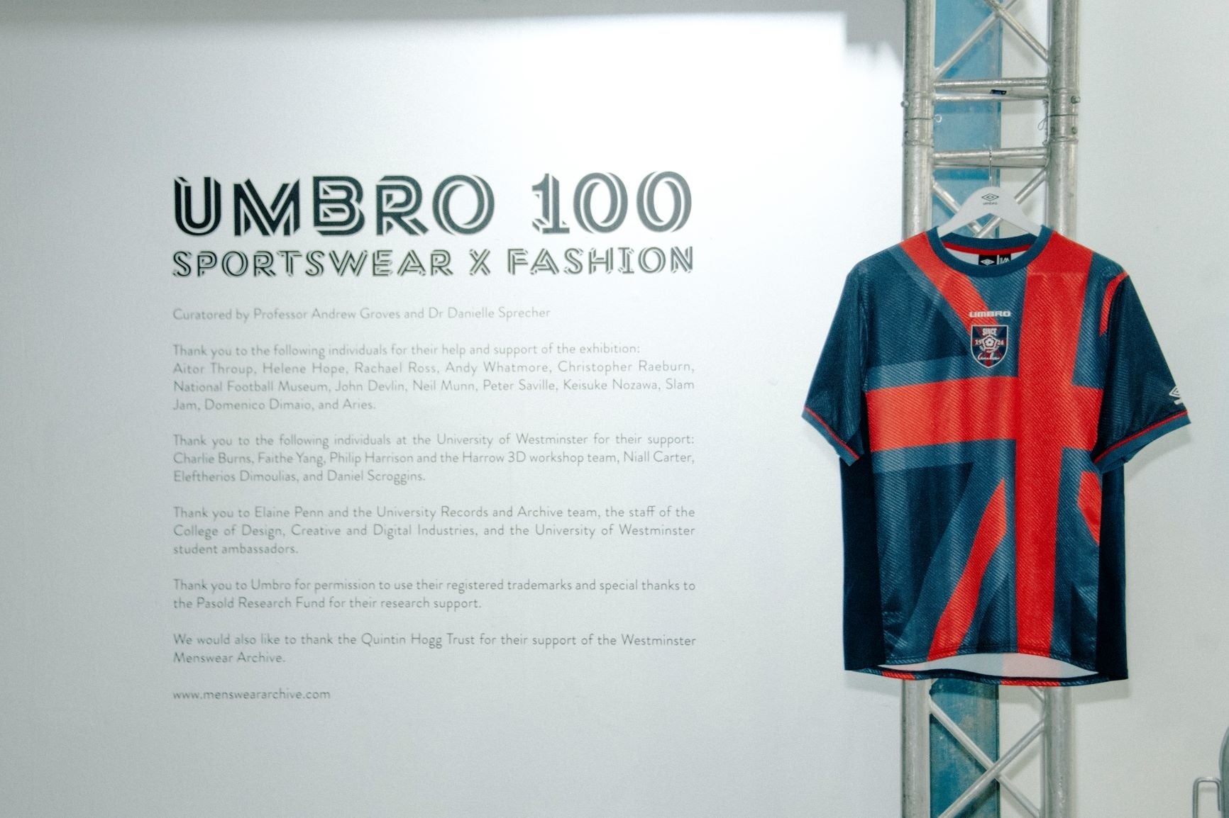 ファッション研究で権威のあるイギリス・ウェストミンスター大学において、創業100周年を記念したアーカイブエキシビション『UMBRO 100: SPORTSWEAR x FASHION(アンブロ 100:スポーツウェア×ファッション)』が4月28日まで開催されています。開催前夜に行われた世界各国の『UMBRO』関係者が集まったパーティにて、この「アンブロ100周年限定コレクション」は発表されました。