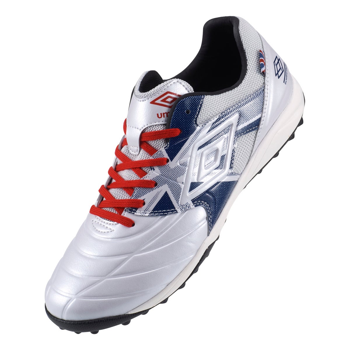 「ACCERATOR」シリーズの人工芝対応トレーニングシューズ。日本国内企画で足幅の広いプレーヤーも安心のワイドラスト。かかとの外側に刻まれた100周年記念ロゴがデザインポイント。