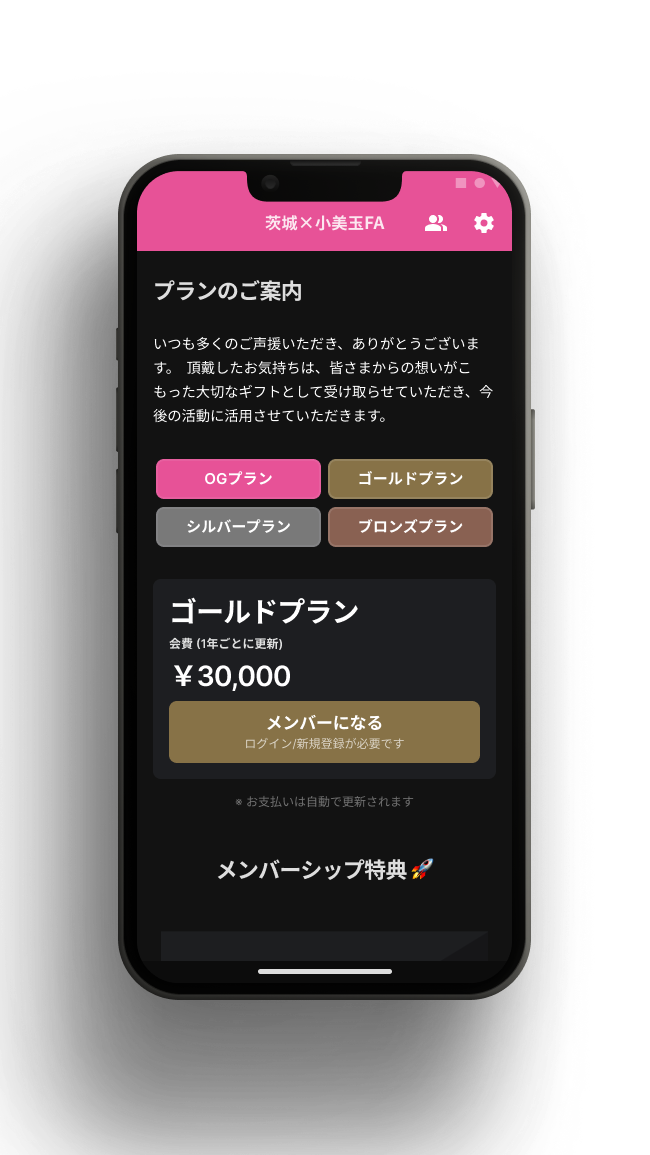 メンバーシップ機能からファンクラブ会員になって頂くと、チームから特別なグッズをお届けします!