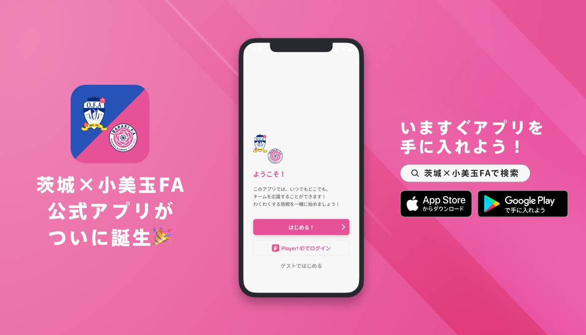 AppStoreもしくはGooglePlayで「茨城×小美玉FA 公式アプリ」と検索!
