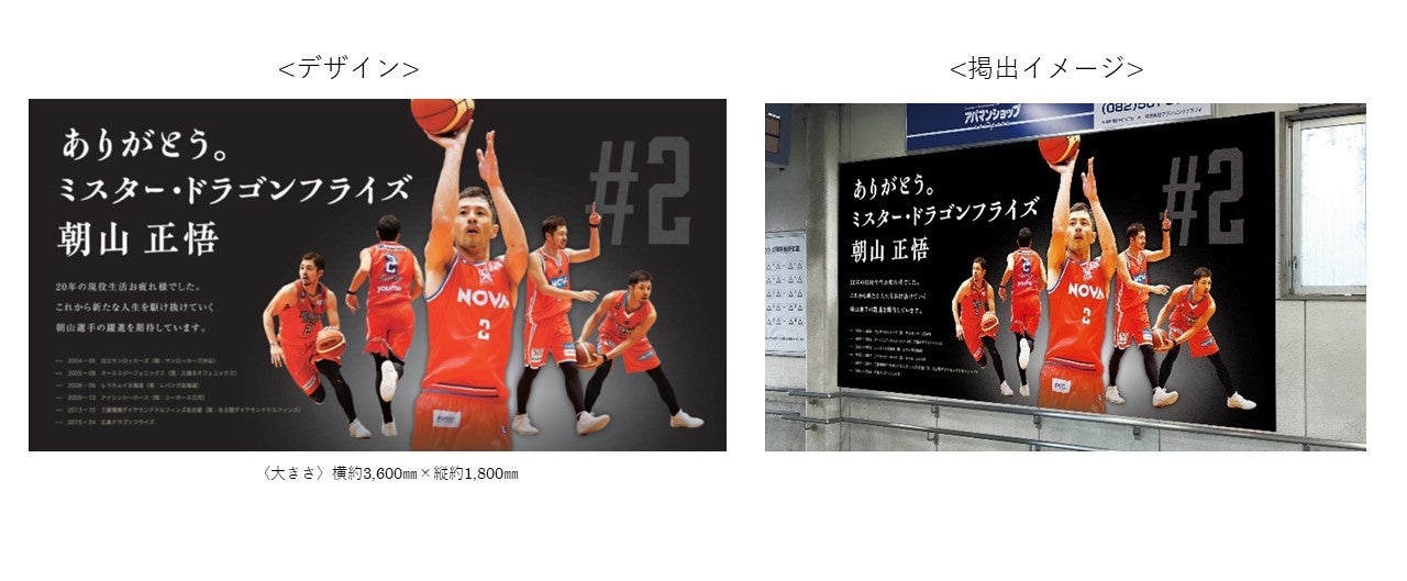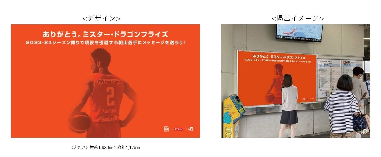 西日本旅客鉄道株式会社中国統括本部広島支社では、B.LEAGUE「広島ドラゴンフライズ」に所属の朝山正悟選手が2023-24シーズンで現役を引退することを踏まえ、長きにわたりチームを支え牽引された〝ミスター・ドラゴンフライズ〟朝山選手に最大のリスペクトと感謝の意を込めて、地域の皆さまと共に送り出す取り組みを実施致します。