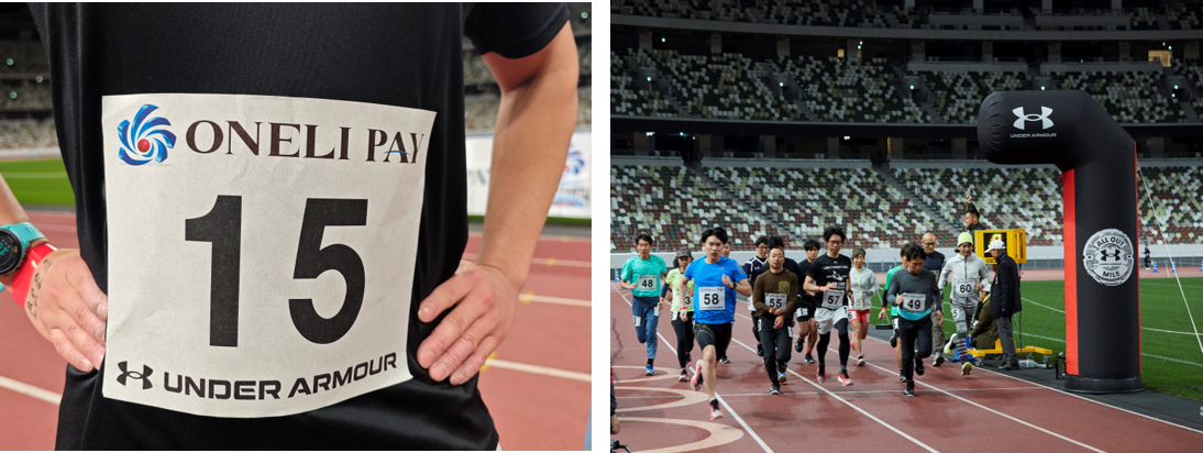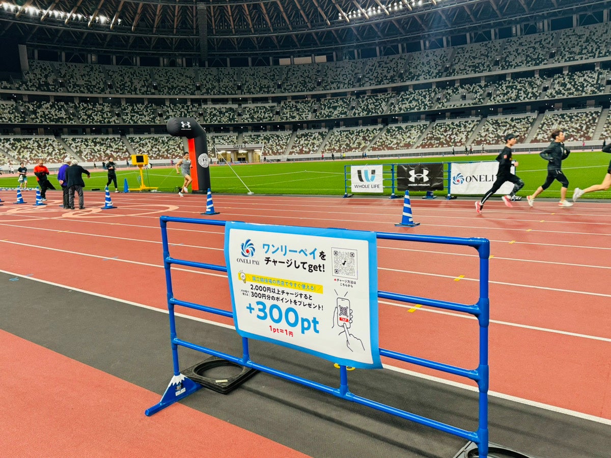 トラックと普段走ることの出来ない駐車場エリア(リングロード)を開放し自由に練習をしていただきました。またプロスプリントコーチの秋本 真吾氏をお招きし特別イベントとしてランニングクリニック、1マイルレースを開催し総勢600名の方々にご参加頂きました。1マイルレースでは「ワンリーペイ」ロゴが掲出されたナンバーカードを着用していただき、熱戦が繰り広げられました。