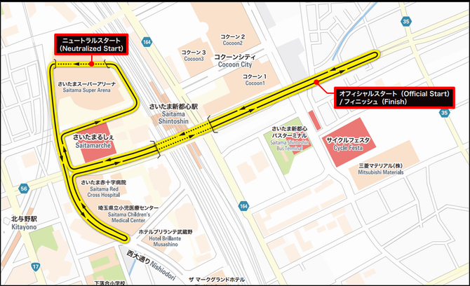 ロードレースのコースの一部としてさいたまスーパーアリーナのメインアリーナを通過するのは史上初。