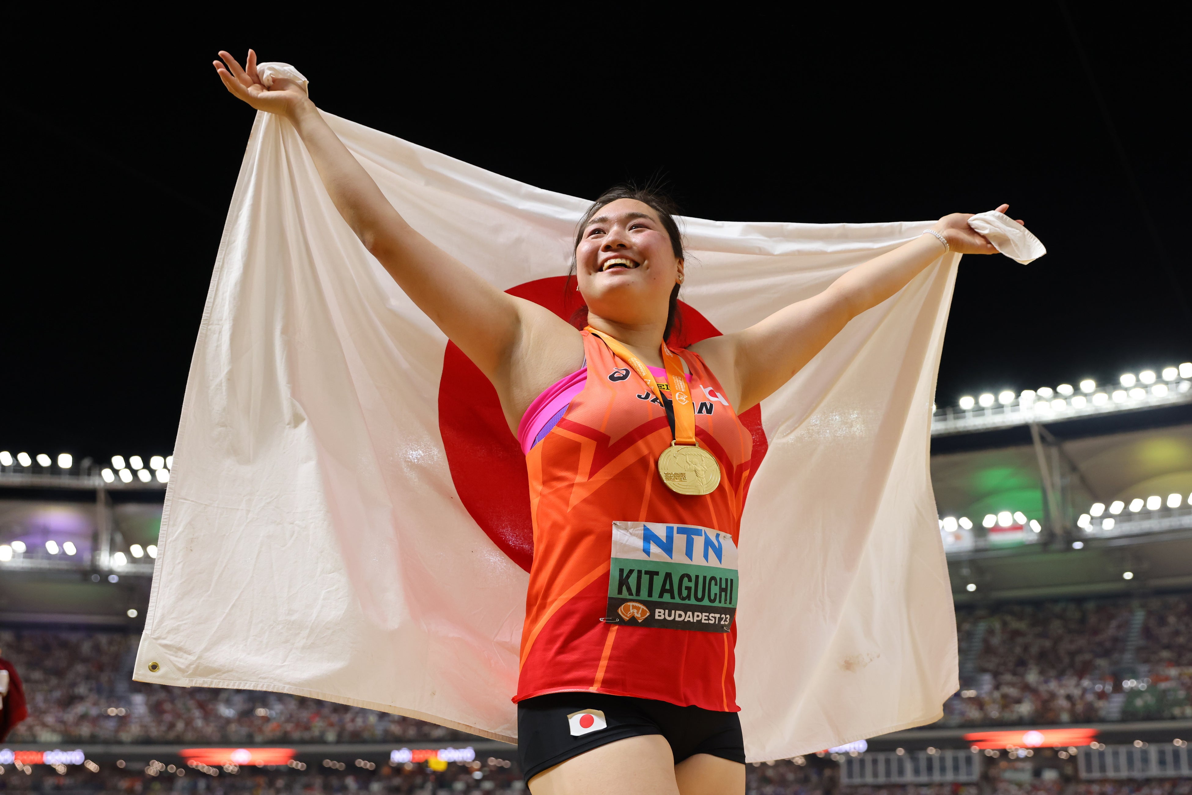 試合前の練習は「本当に状態が悪かった」といい、不安を抱えたまま本番を迎えました。1投目は55m97。その後も4投目までは本来の投げを披露できず、首をかしげる場面も多く見られました。DLで最終6投目に残るには、5投目を終えてトップ3位に入る必要があります。北口は4投目を終えて7位に沈み、技術面のことを考えるよりも気持ちで投げることを優先。「これが最後になっても後悔しないように」と思い切り良く腕を振ると、61m44をマークして2位に浮上しました。「ファイナル3」でも小気味よい助走から渾身の一振りを見せて62m97。逆転優勝が決まると、満面の笑みで跳びはね、トレードマークの天真らんまんさが戻りました。