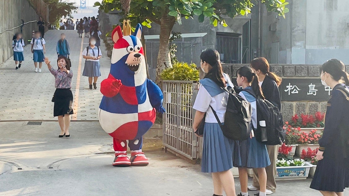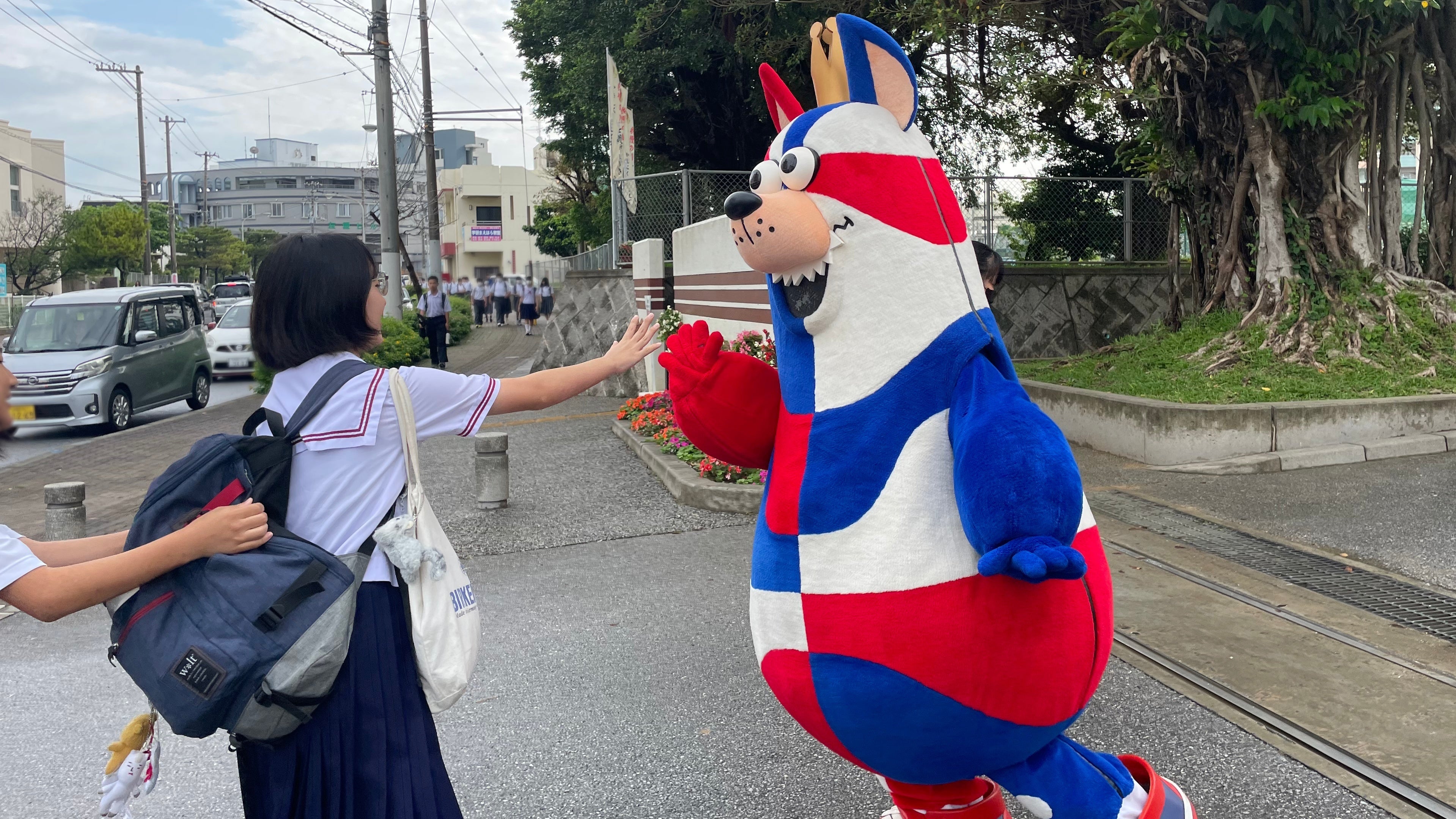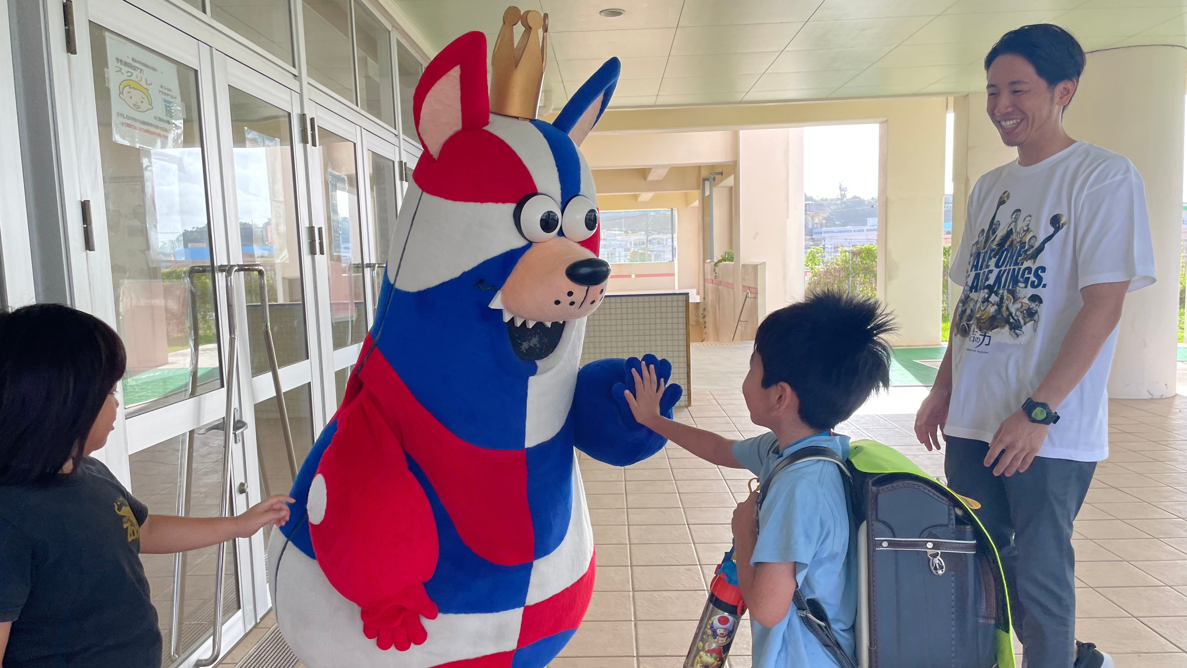 「おおきなわ」の活動の一環として行っている「ゴーディーによる朝のあいさつ運動」で、4月はホームタウン沖縄市、宜野湾市、那覇市の小・中学校にてあいさつ運動に参加しました。ご協力いただいた各小中学校の皆さま、ありがとうございました。