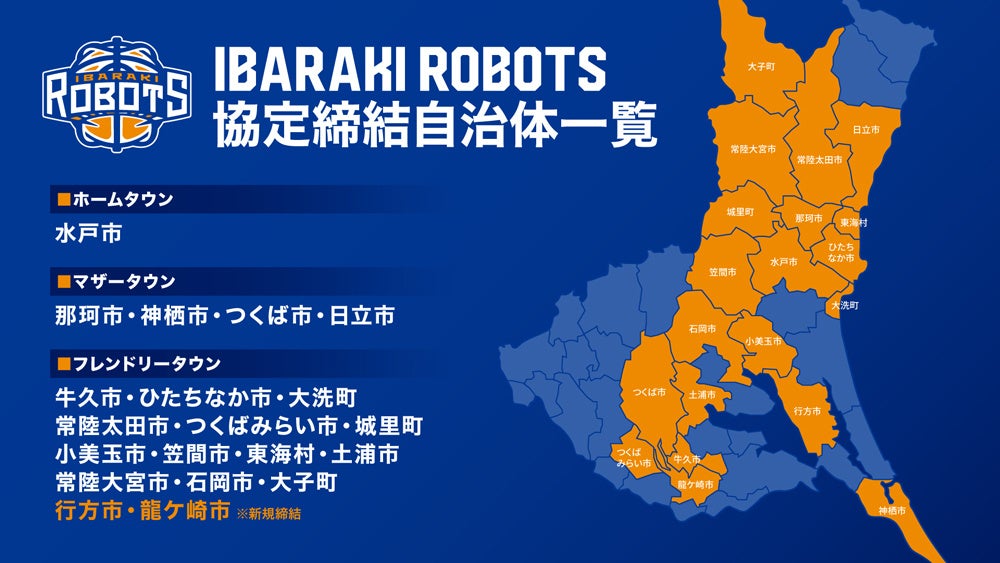 この度、茨城ロボッツは、行方市、龍ケ崎市とフレンドリータウン協定を締結いたしました。
