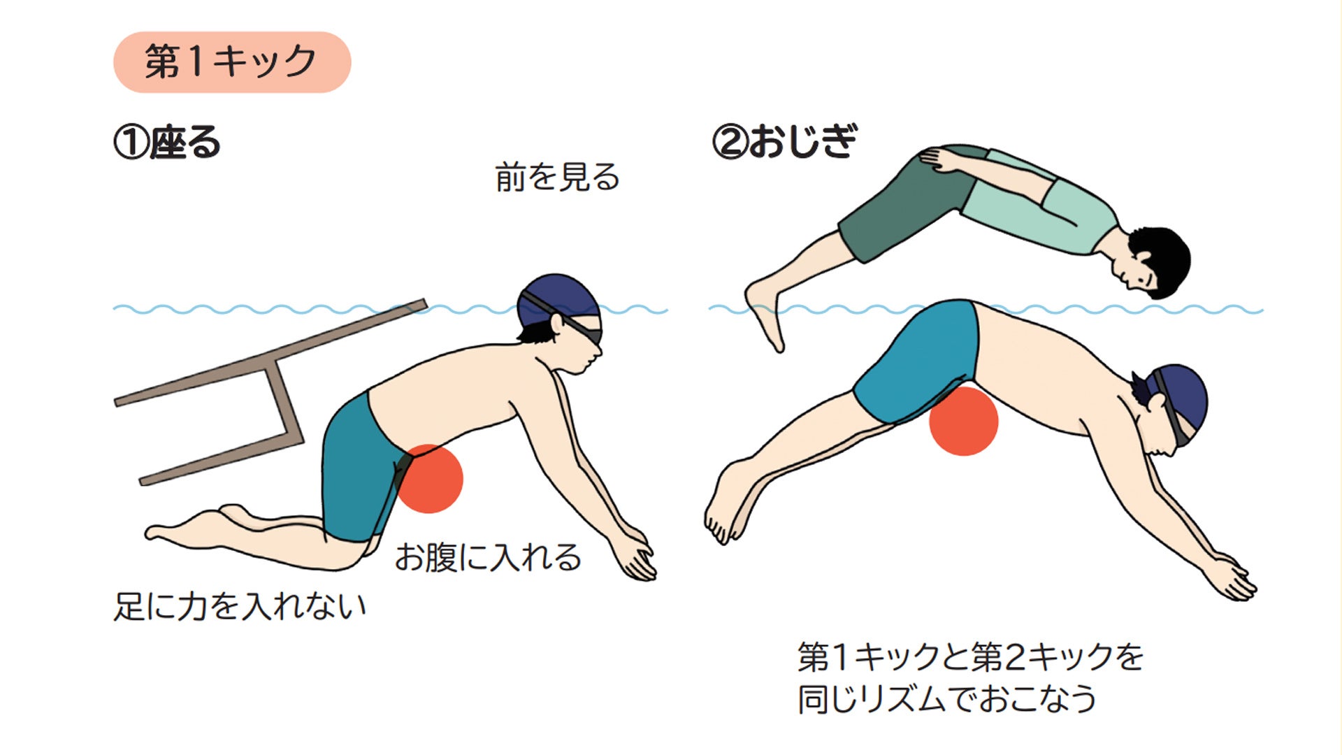 水の中の様子がわかりやすいようにオールカラーのイラストで体の動かし方を解説しています。
