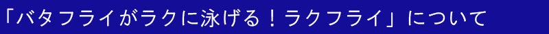 馬場の提案するバタフライはどんどんラクに泳げるようになるバタフライです。すべての人がラクにバタフライを泳いでほしいとの想いから「ラクフライ」と名付けました。