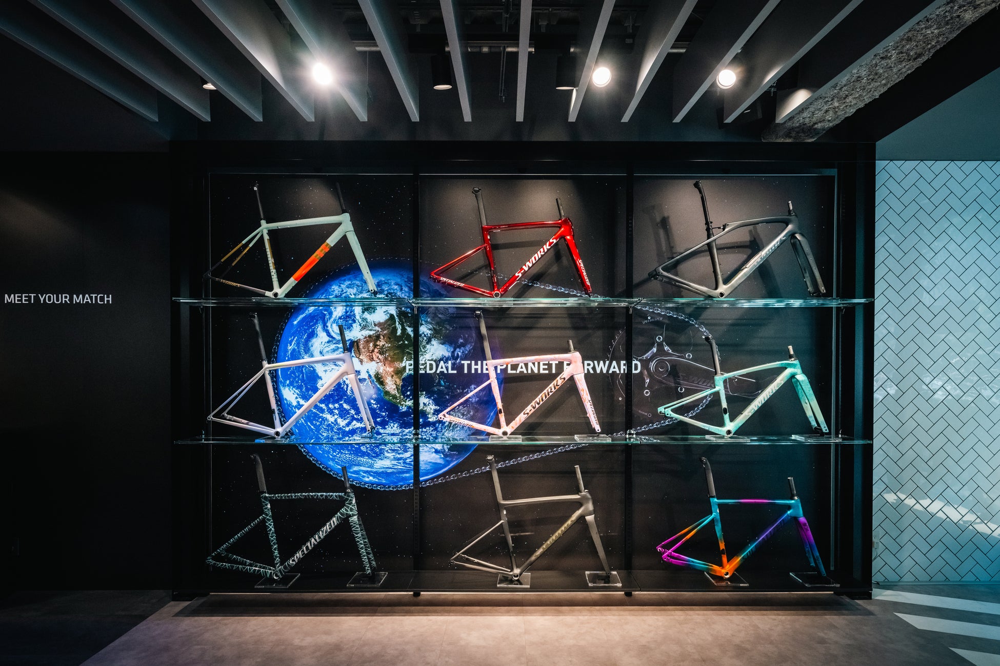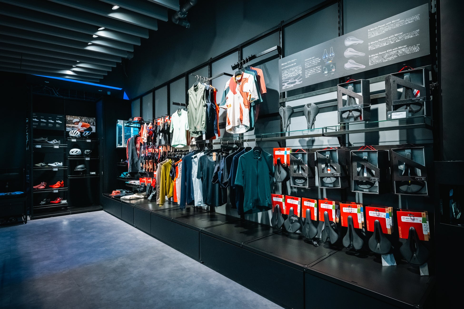 常に最先端のバイクを発信してきた同店は、コロナ渦以降のサイクリングシーンの変化に合わせ2024年春にリニューアルしました。人気のロードバイクユーザーや国内外の旅行客にスペシャライズドの革新性を体験していただくため、同社の中でも最新の技術がより多く詰まった最高峰グレードS-Worksを中心とした展示に生まれ変わりました。1974年に設立されたスペシャライズドは今年で50周年。ショッピングのみならず、同社のこれまでの道程と、これからのサイクリングシーンを発信していく拠点となります。
